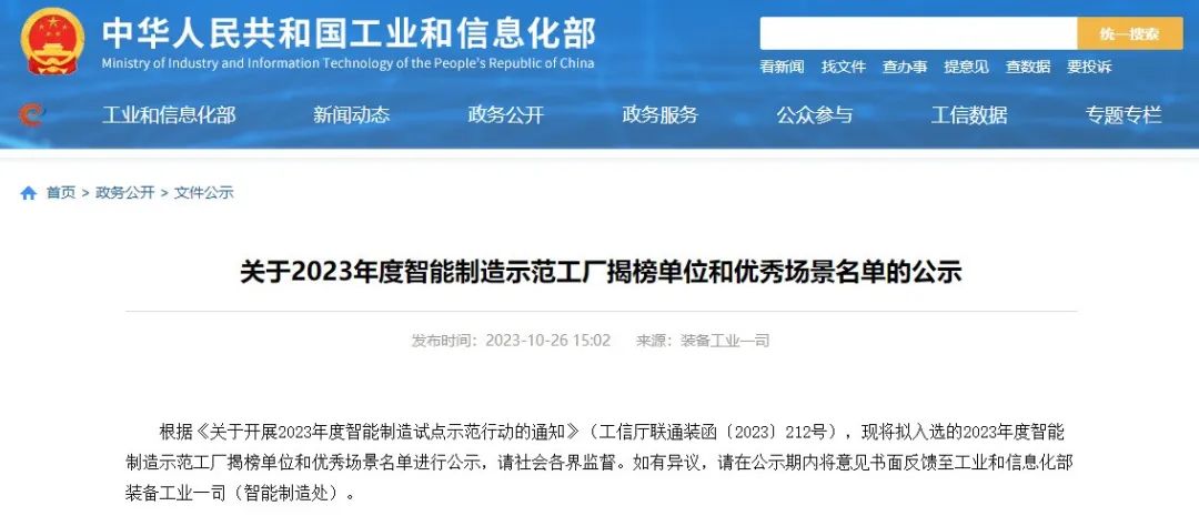 “ 國家級(jí)智能制造示范工廠”,是今年8月由工業(yè)和信息化部、國家發(fā)展改革委、財(cái)政部、國務(wù)院國資委、市場監(jiān)管總局五部門聯(lián)合開展并發(fā)布的《關(guān)于開展2023年度智能制造試點(diǎn)示范行動(dòng)的通知》中而設(shè)立的授牌活動(dòng),旨在遴選一批智能制造優(yōu)秀場景,以揭榜掛帥方式建設(shè)一批智能制造示范工廠和智慧供應(yīng)鏈,在各行業(yè)、各領(lǐng)域選樹一批排頭兵企業(yè),推進(jìn)智能制造高質(zhì)量發(fā)展。
