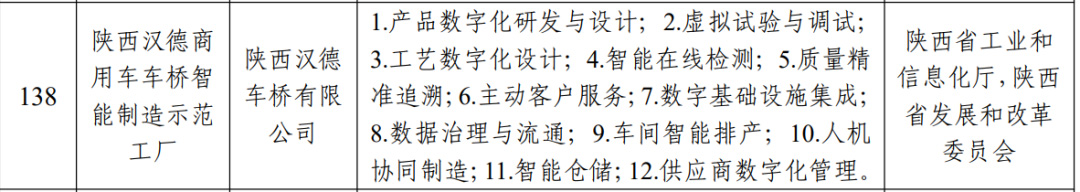 近日,工業(yè)和信息化部根據(jù)《關(guān)于開展2023年度智能制造試點(diǎn)示范行動(dòng)的通知》(工信廳聯(lián)通裝函〔2023〕212號(hào)),對2023年度智能制造示范工廠揭榜單位和優(yōu)秀場景名單進(jìn)行了公示,我司用戶陜西漢德車橋有限公司成功入選2023年度國家級(jí)智能制造示范工廠。