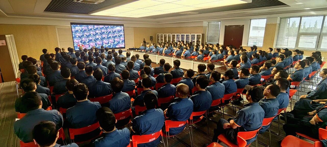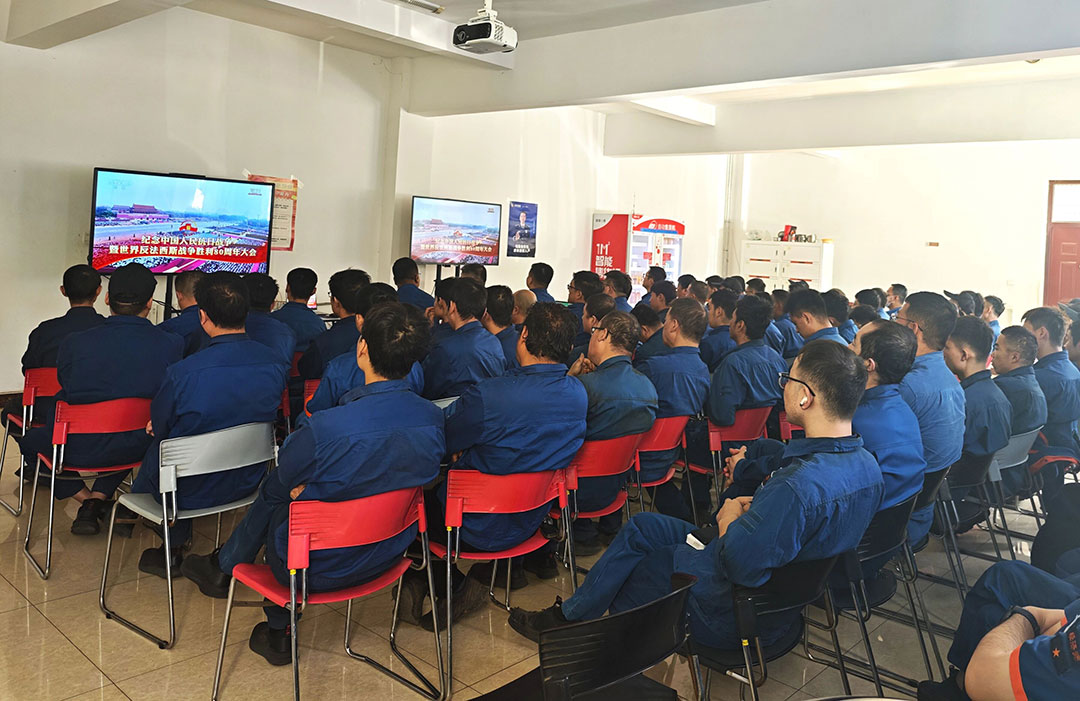 上圖:巨能股份員工集中觀看閱兵式主會(huì)場(chǎng)