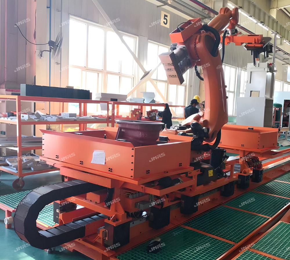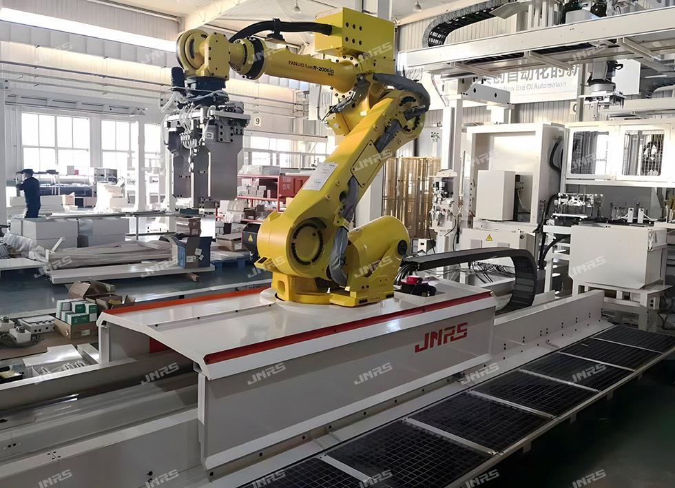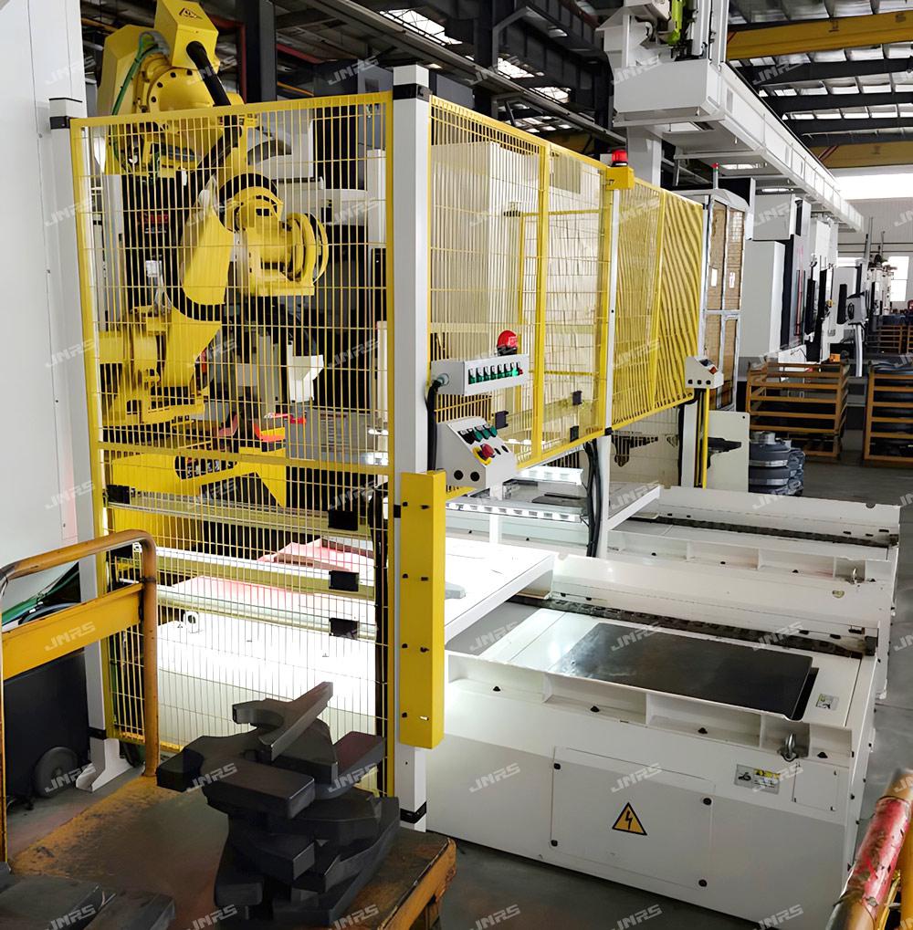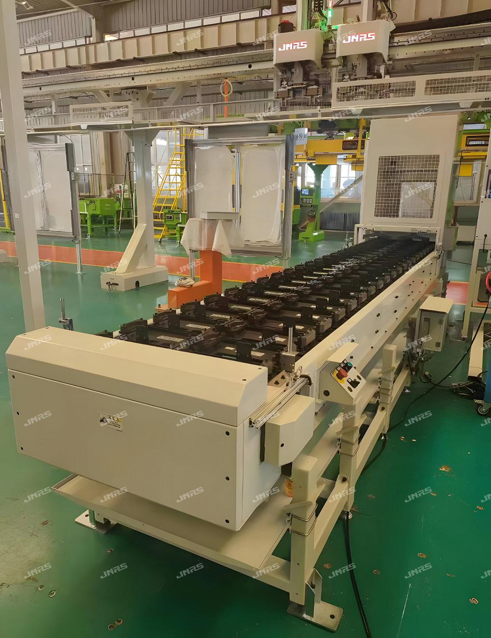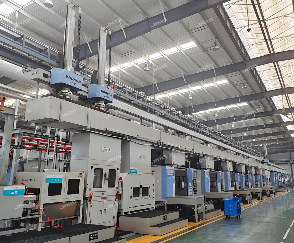 巨能機器人研發(fā)的R-FMS柔性制造系統(tǒng),可實現(xiàn)多種零件在一條自動線中同時混線生產,同時可接收來自用戶MES系統(tǒng)發(fā)來的生產訂單,可直接在系統(tǒng)上進行計劃管理,實現(xiàn)多機床、多品種生產計劃的靈活調度和智能排產,還可在手機等智能終端設備遠程監(jiān)控生產狀態(tài)、下達生產計劃、調整生產順序,實現(xiàn)智能化、柔性化生產模式。