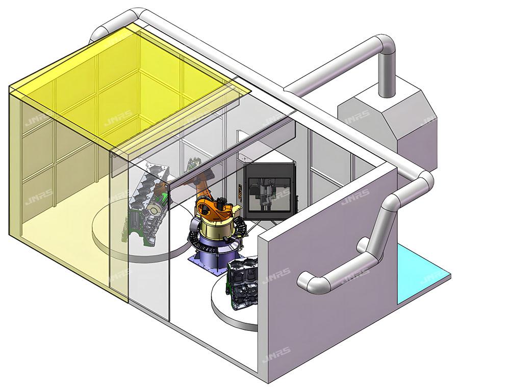 FR系列是基于機器人搬運零點夾具托盤的搬運系統(tǒng),是基于通過柔性制造軟件完成柔性加工的產品。該系統(tǒng)可實現(xiàn)多種零件的兼容,通過零點定位系統(tǒng)更換機床夾具托盤的方式是現(xiàn)實換產。系統(tǒng)包含加工機床,機器人托盤搬用系統(tǒng),線邊庫,上下料站,清洗單元等。