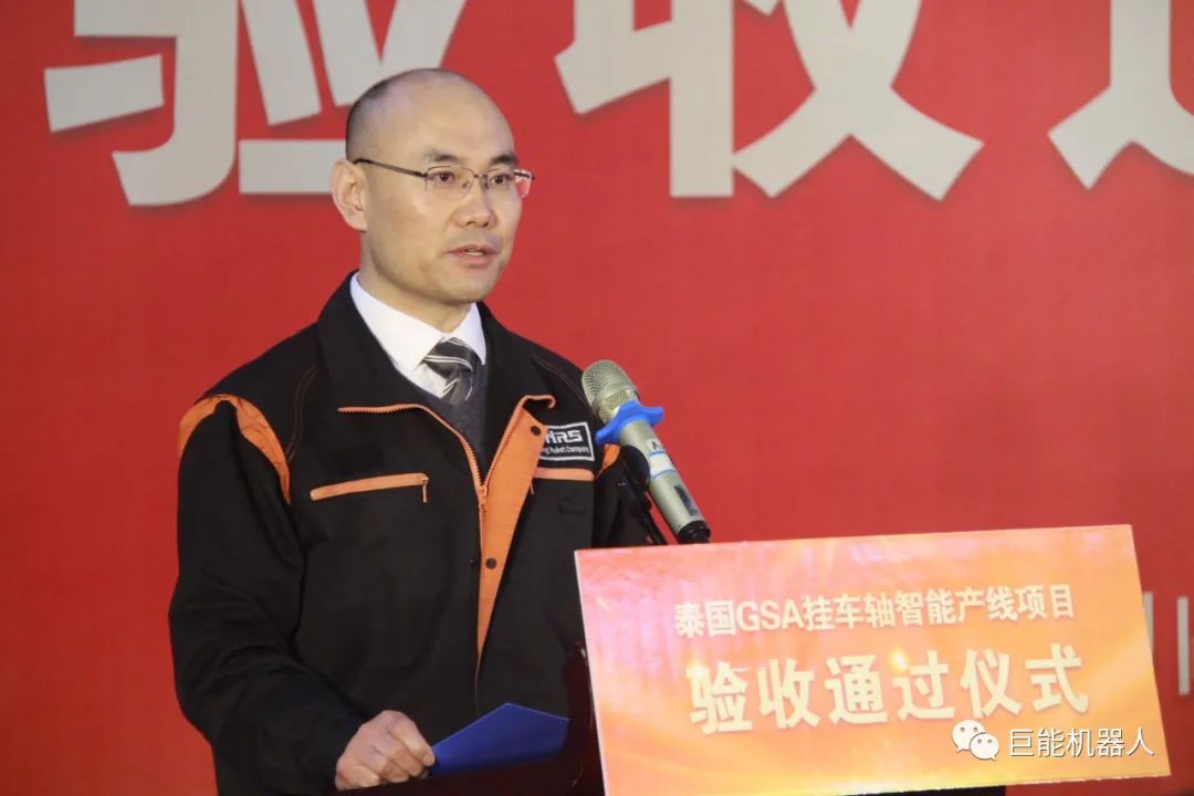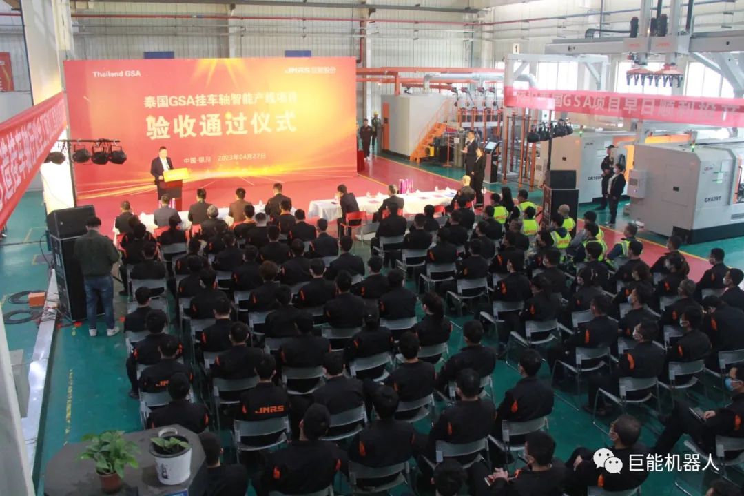 4月27日上午,“泰國(guó)GSA掛車軸智能產(chǎn)線項(xiàng)目驗(yàn)收通過儀式”在巨能公司舉行,銀川經(jīng)開區(qū)黨工委委員、管委會(huì)副主任樊斌宣布項(xiàng)目正式開機(jī)自動(dòng)運(yùn)行,泰國(guó)GSA項(xiàng)目管理團(tuán)隊(duì)、產(chǎn)線供應(yīng)商伙伴、媒體記者和巨能公司員工共同出席見證。